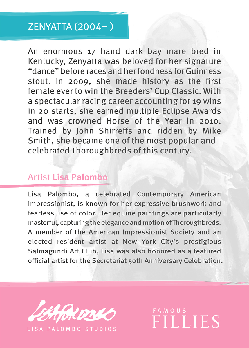 Prints and trading cards available here, https://lisa-palombo.myshopify.com/collections/famous-fillies